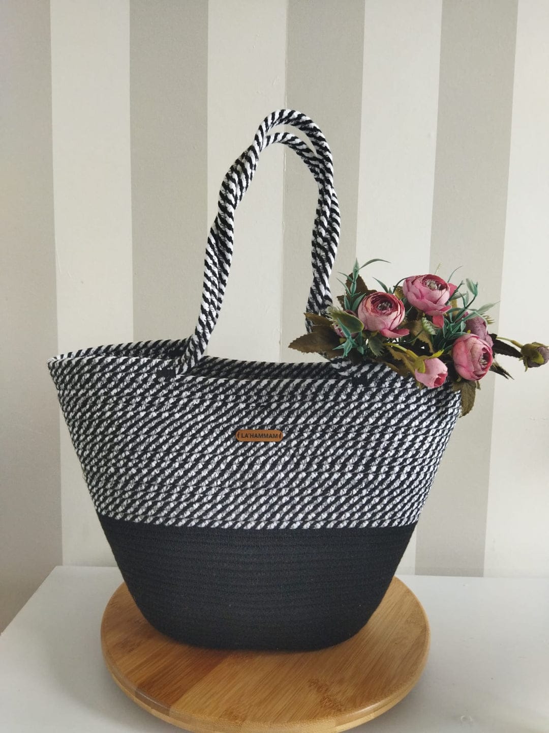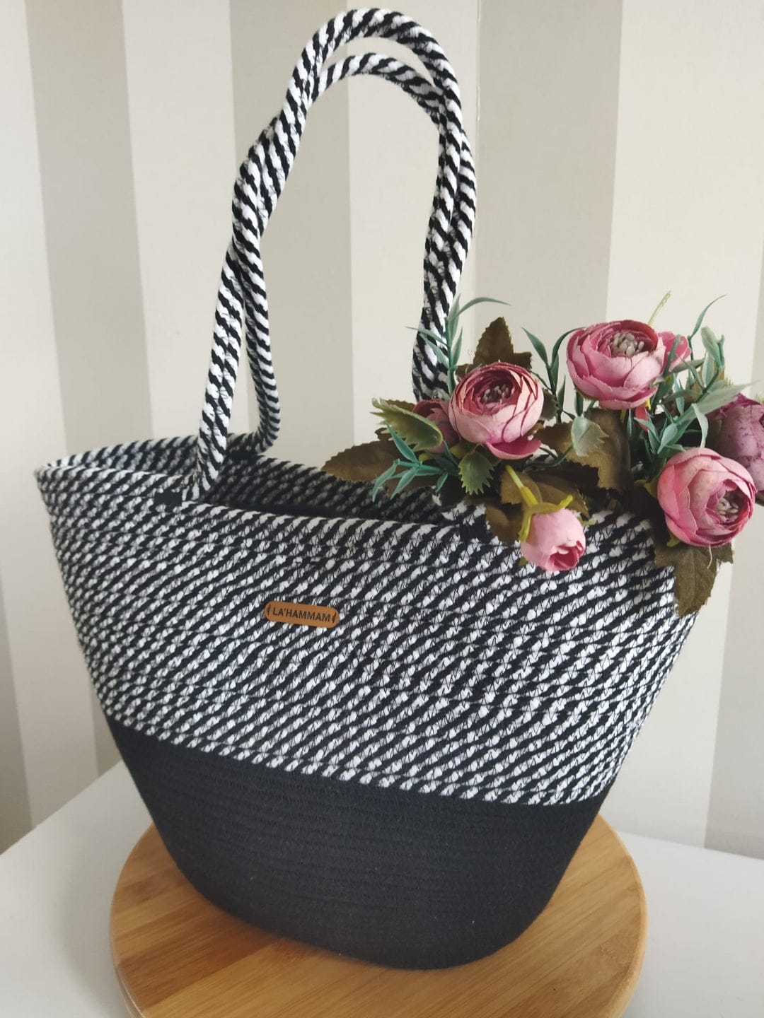 Eco- Friendly Women Jute Strap Bag Beige-Blk Strap