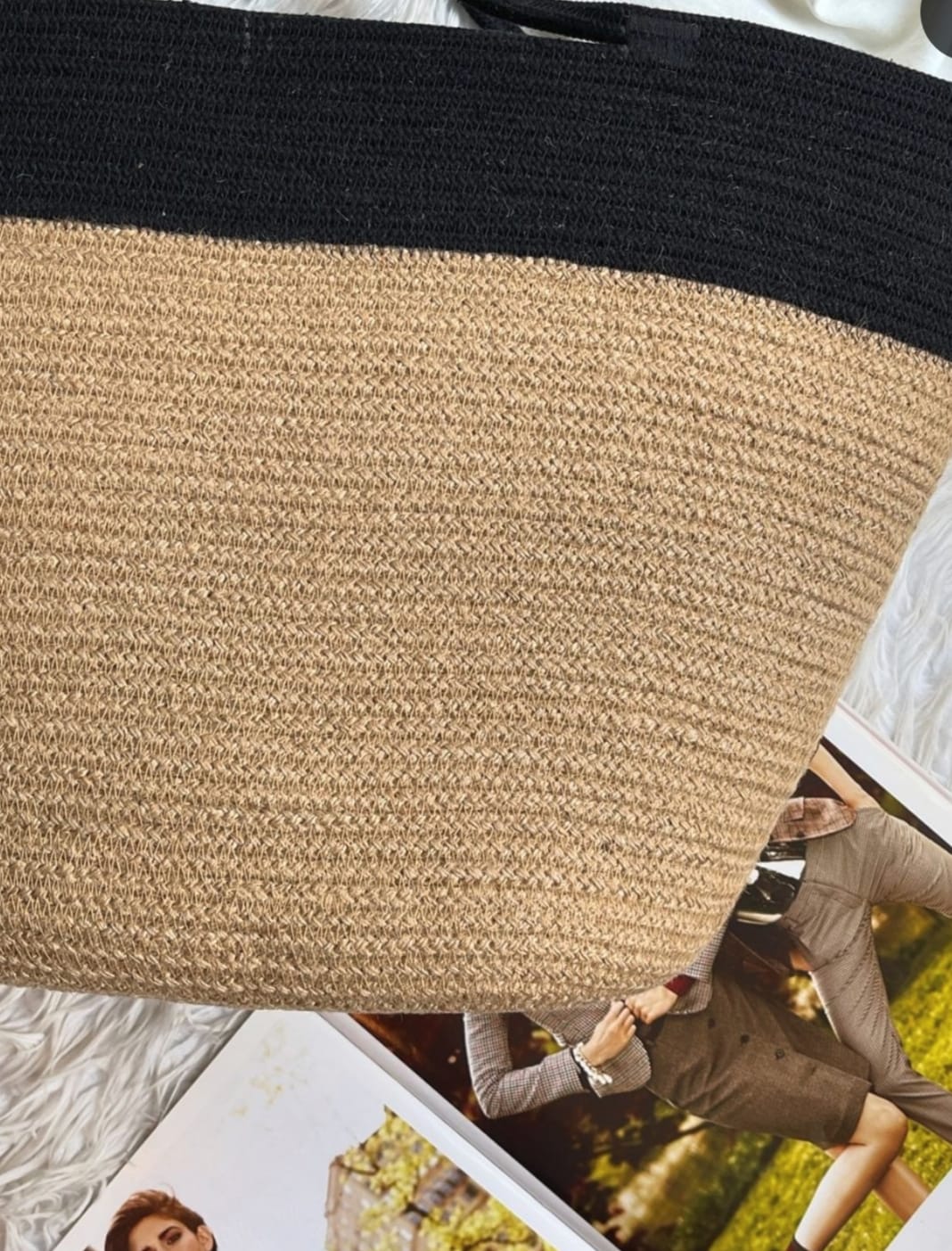 Chic Black Gears Jute-Cotton Tote For Women