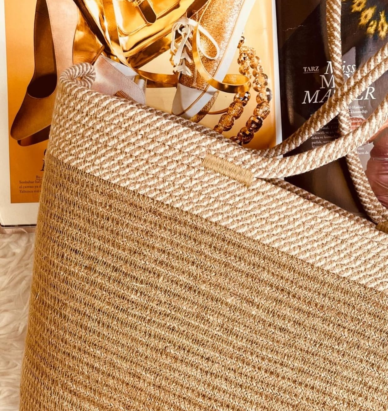 Golden Dusk Sling Bag – Elegant Jute Bag