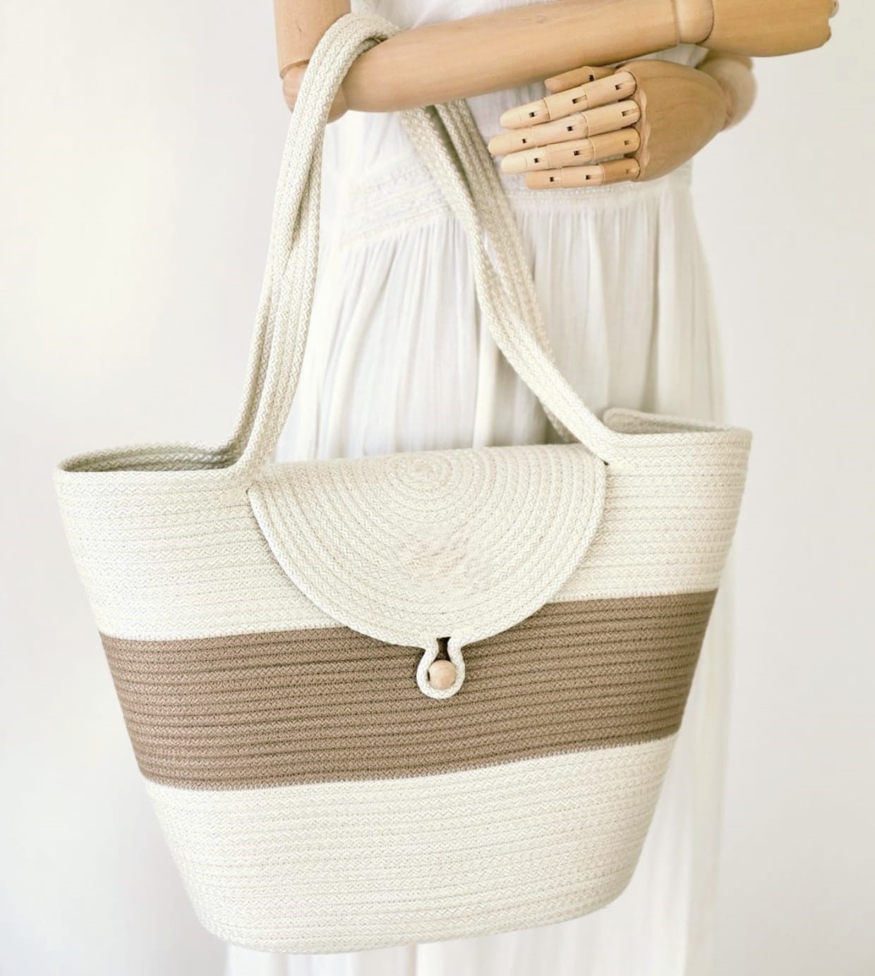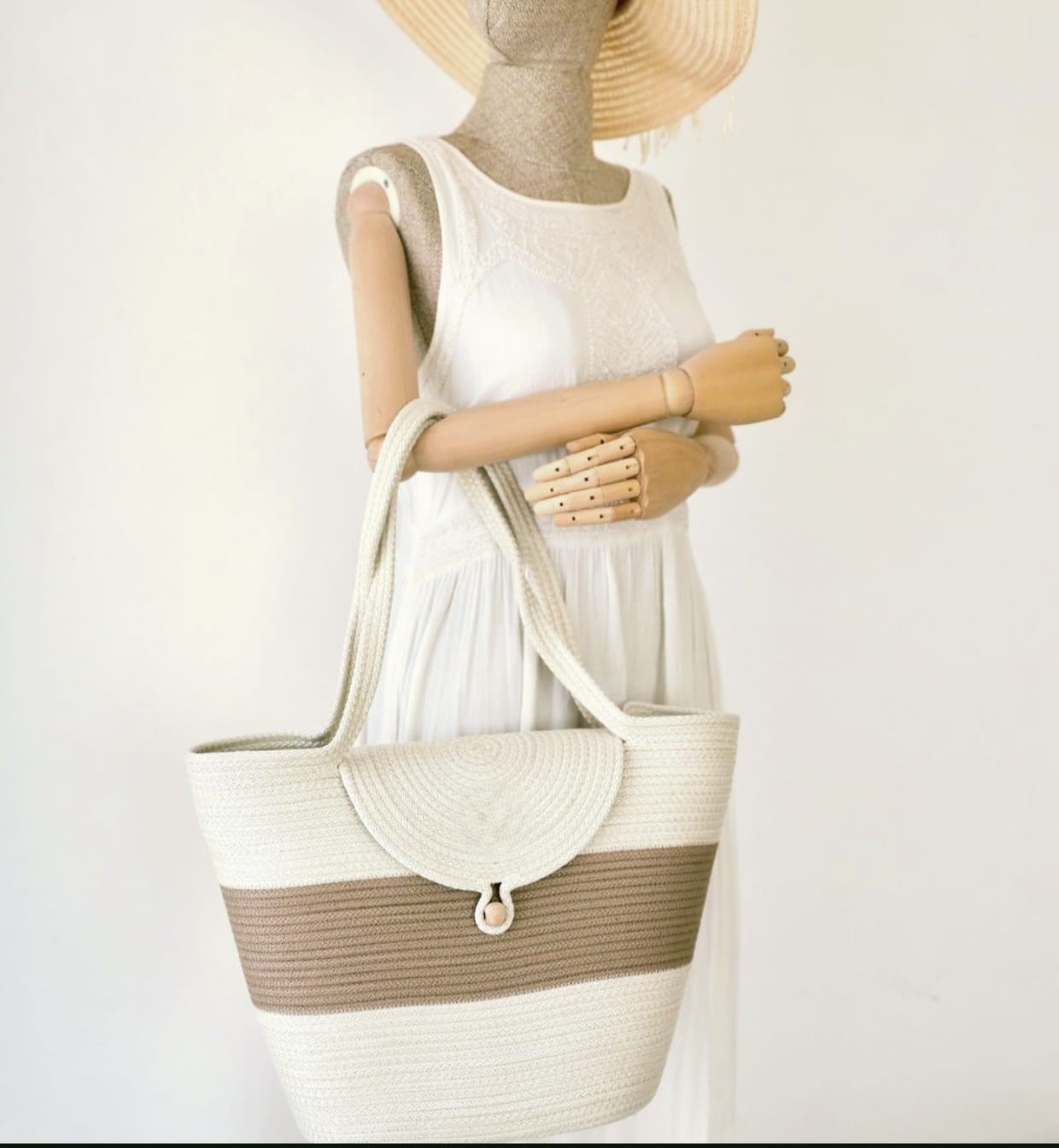 Eco- Friendly Women Jute Strap Bag Beige-Blk Strap