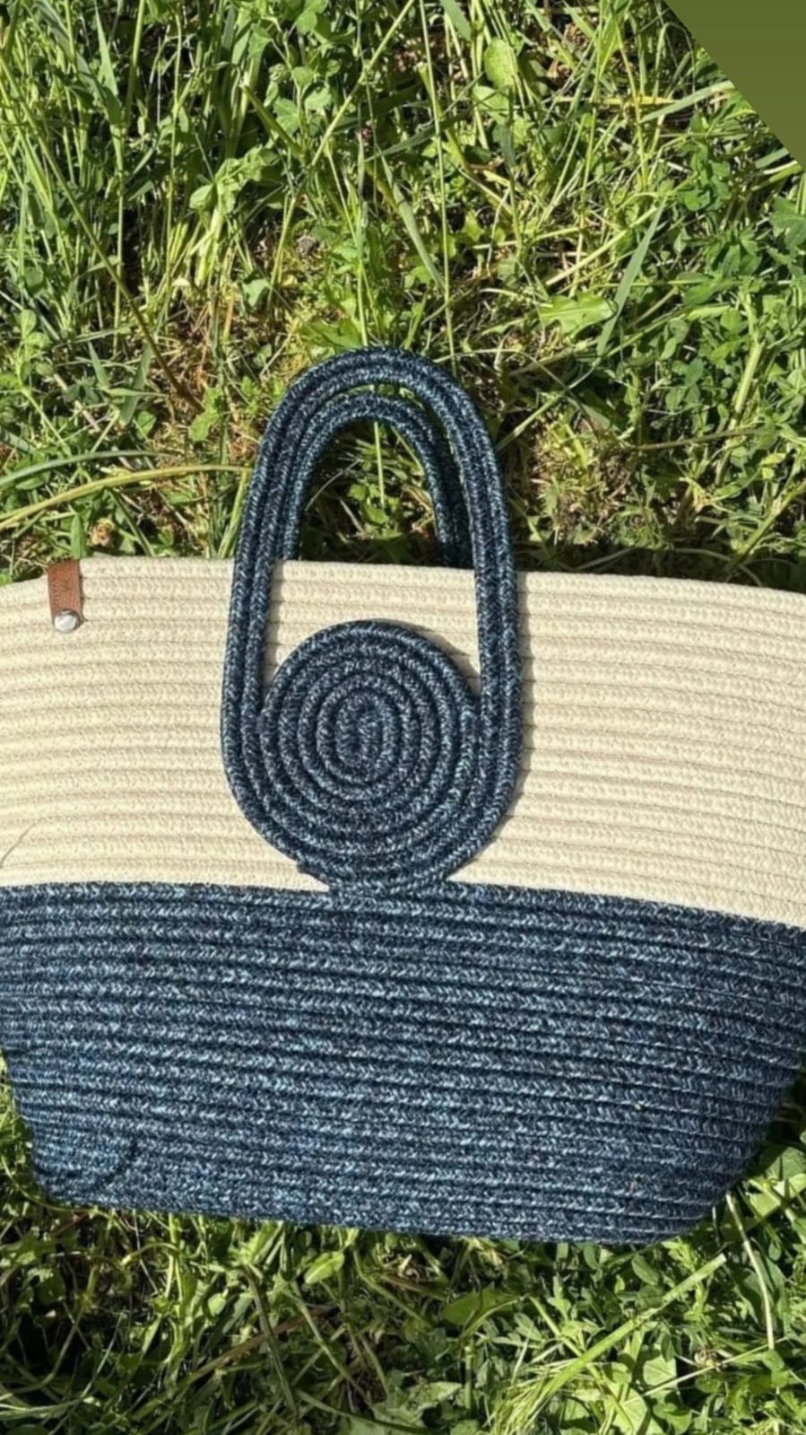 Eco- Friendly Women Jute Strap Bag Beige-Blk Strap
