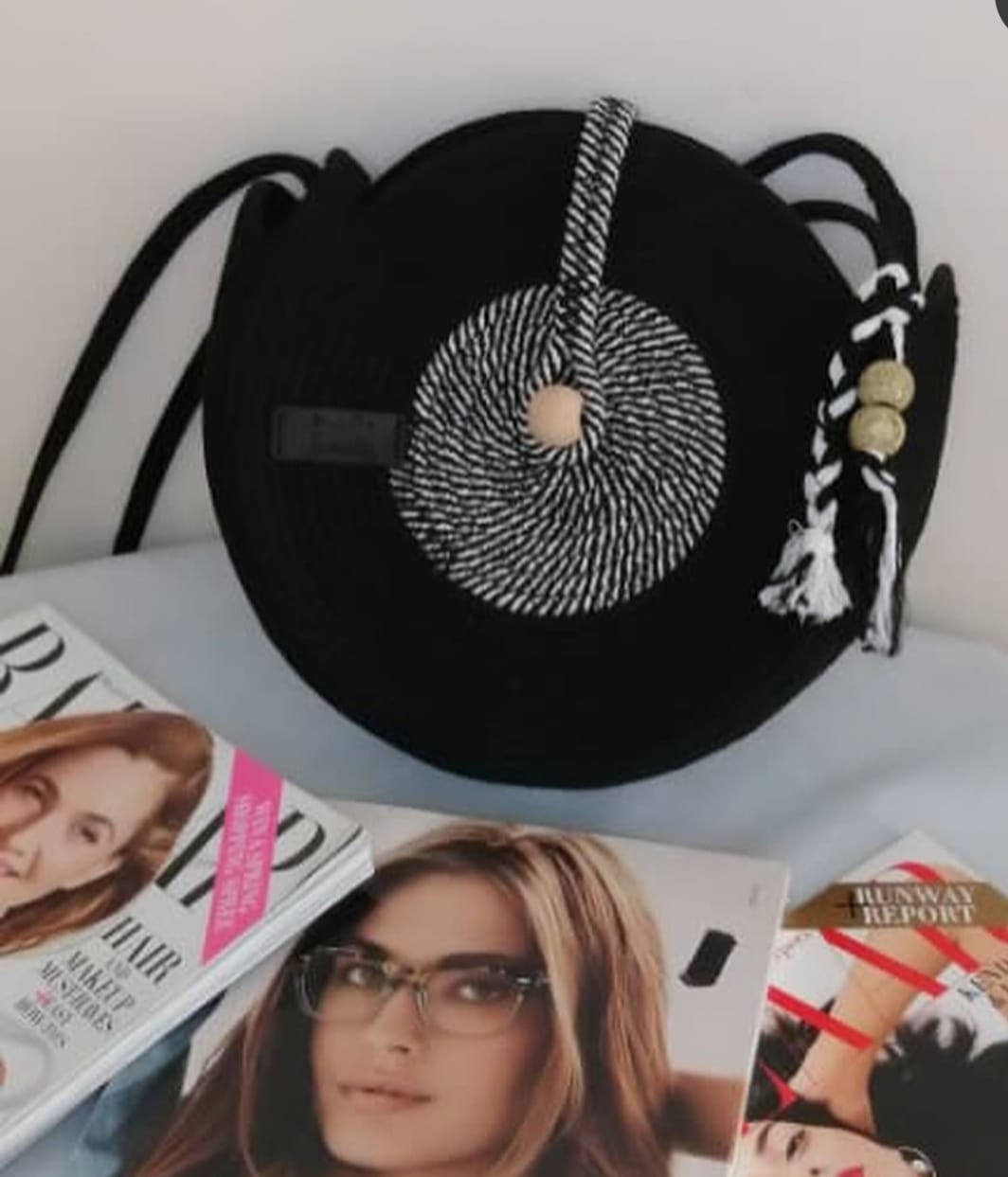 Eco- Friendly Women Jute Strap Bag Beige-Blk Strap