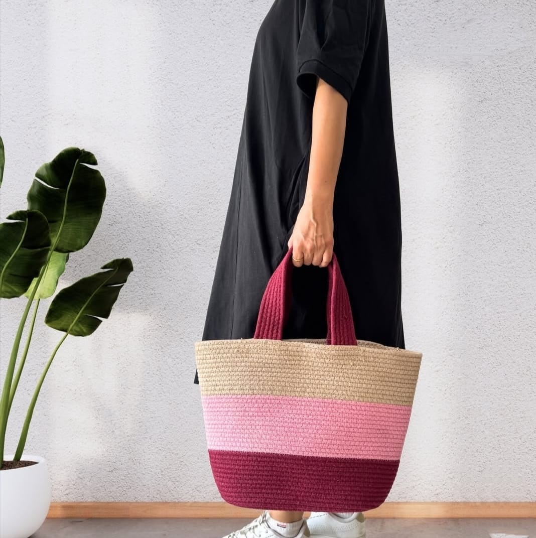 Cotton Rope/ Jute /Small Dry grass/Natural Cane/Chic Dry Grass Bag/Cotton Rope Woven Bag For Women Vibrant Cotton Rope Handbag Chic Large Tote For Women,Stylish Carryall & Shoulder Beige-Pink-Red Bag