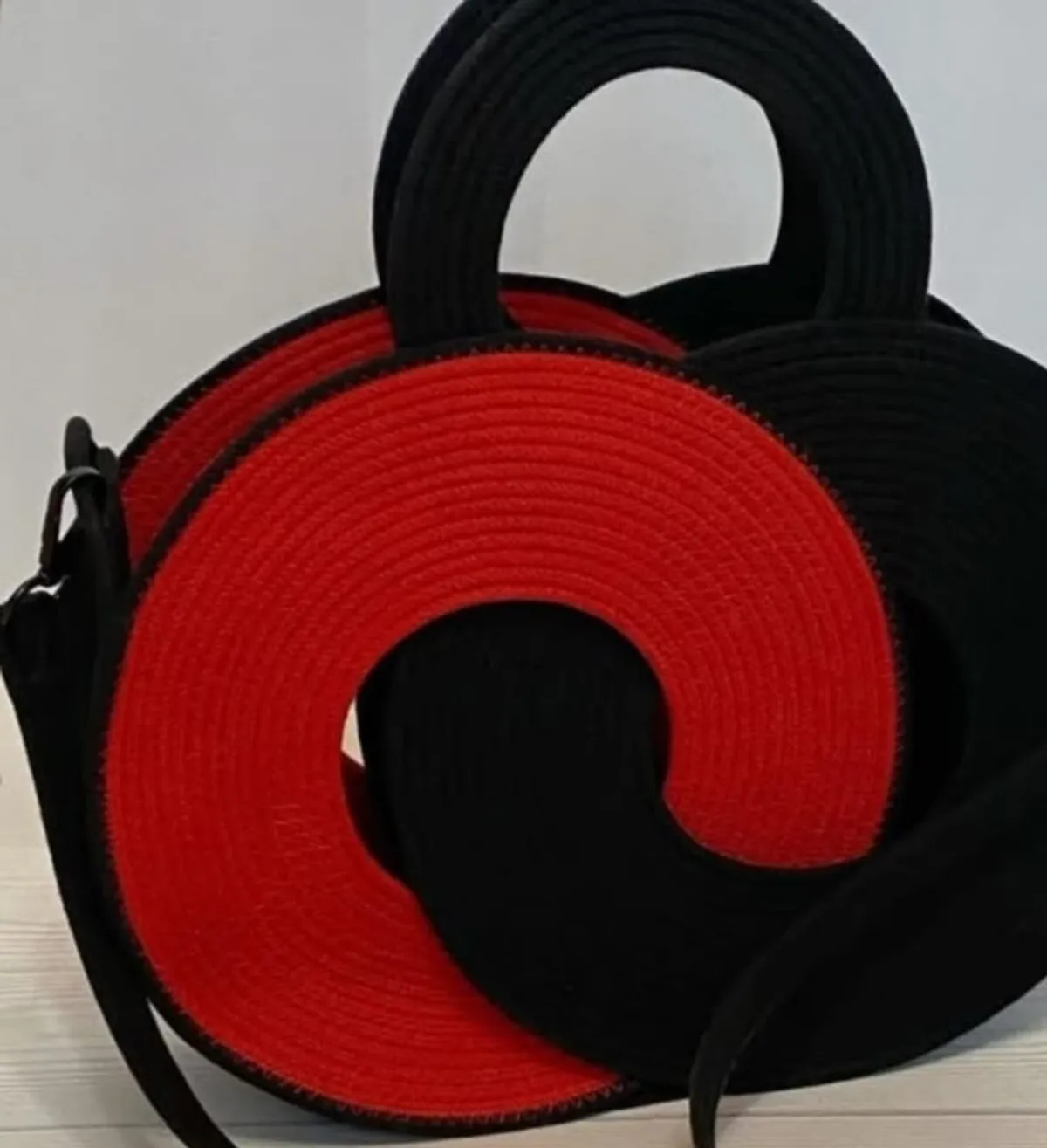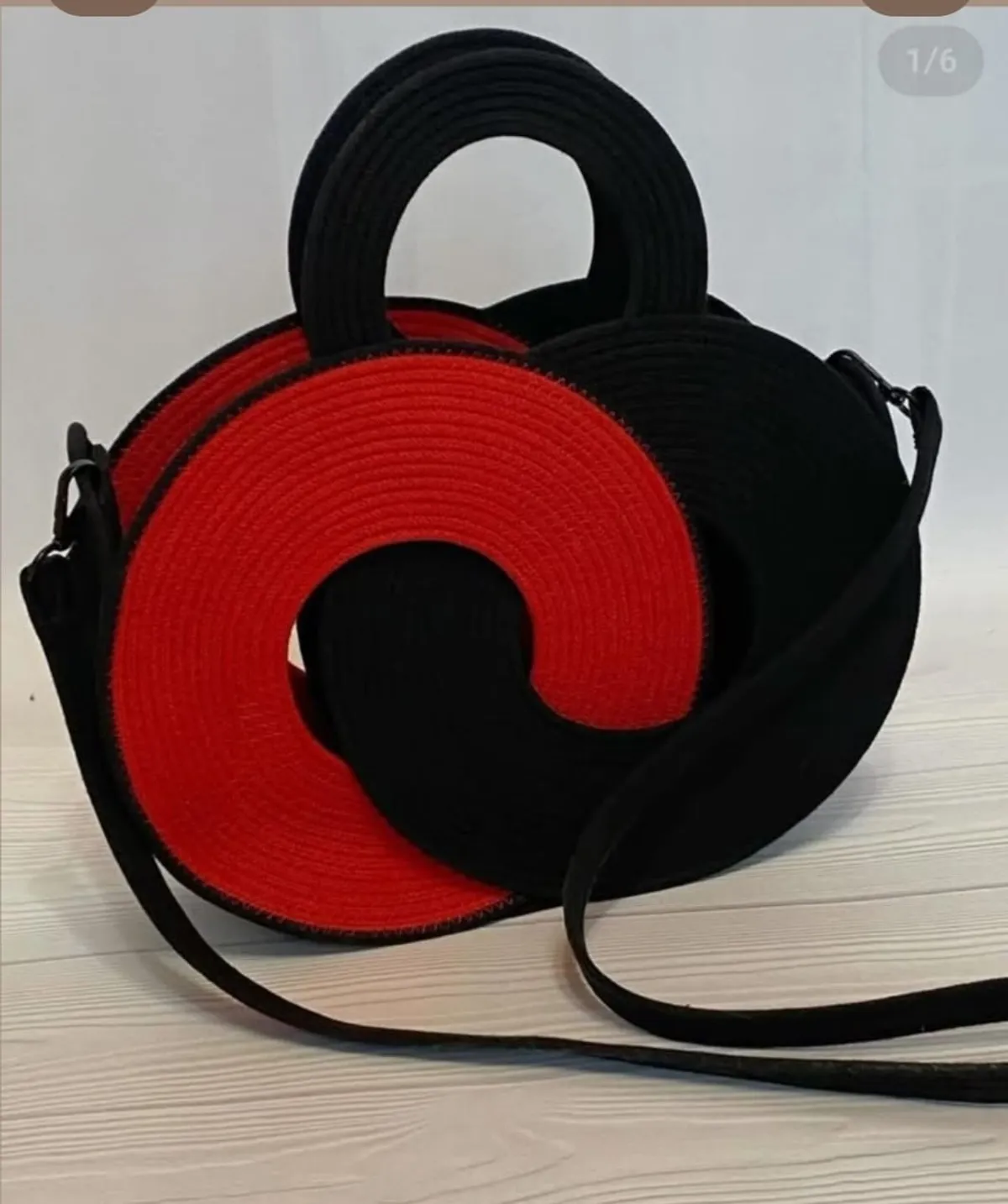 Turn heads wherever you go with the Crimson Eclipse Spiral Handmade Sling Bag — a striking fusion of contemporary design and handcrafted artistry. Featuring a dramatic spiral pattern in deep red and black, this bag is meticulously handwoven to create a powerful visual statement.