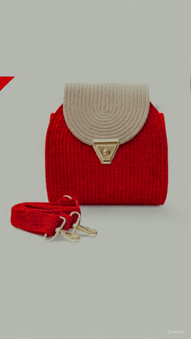 Handmade Crochet Bag – BIEGE-RED HNDBG GOLDEN BUTN