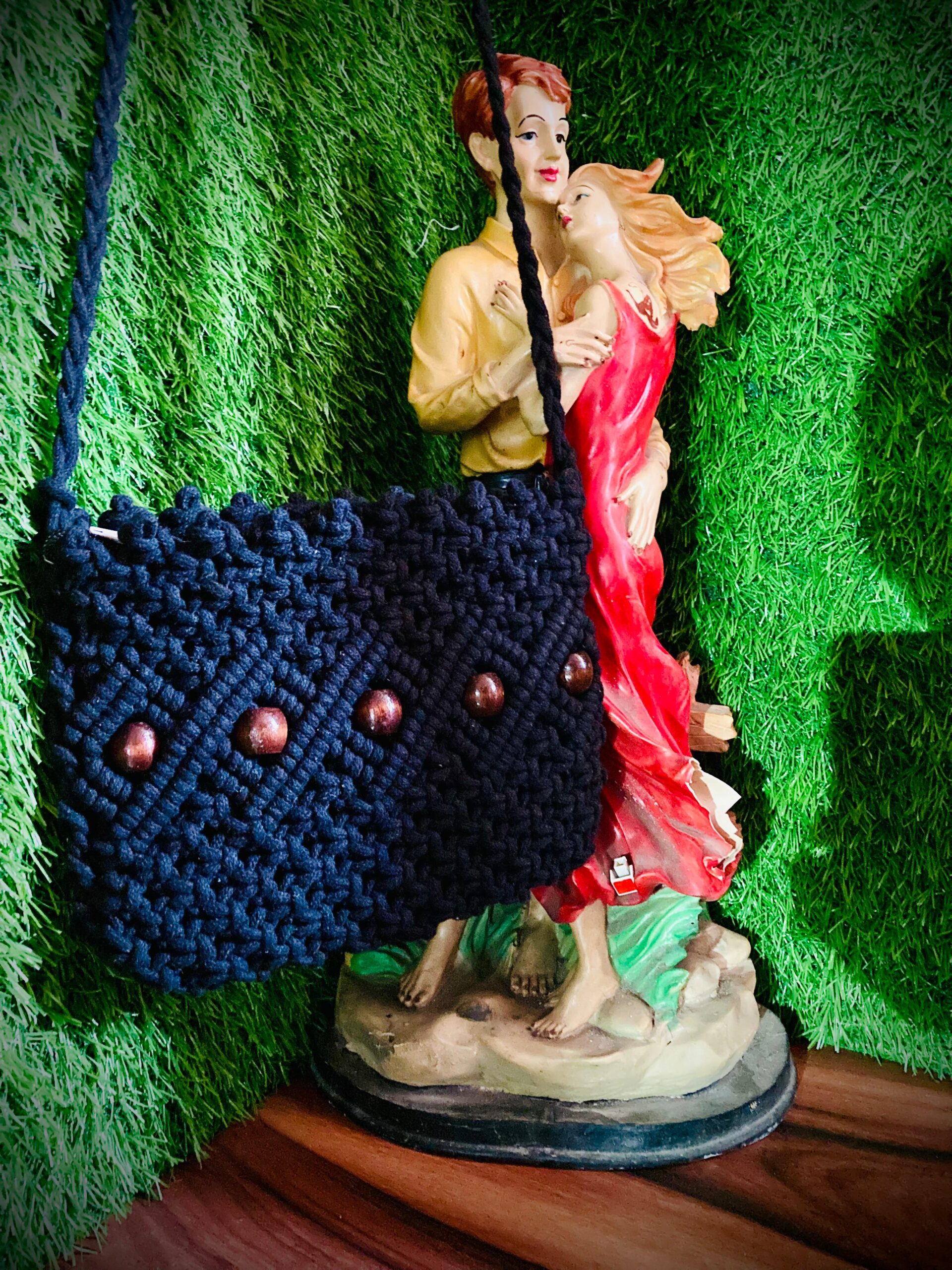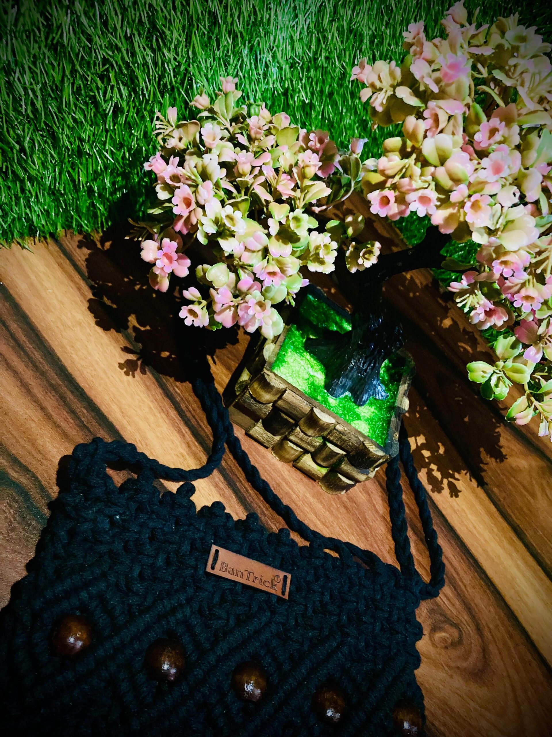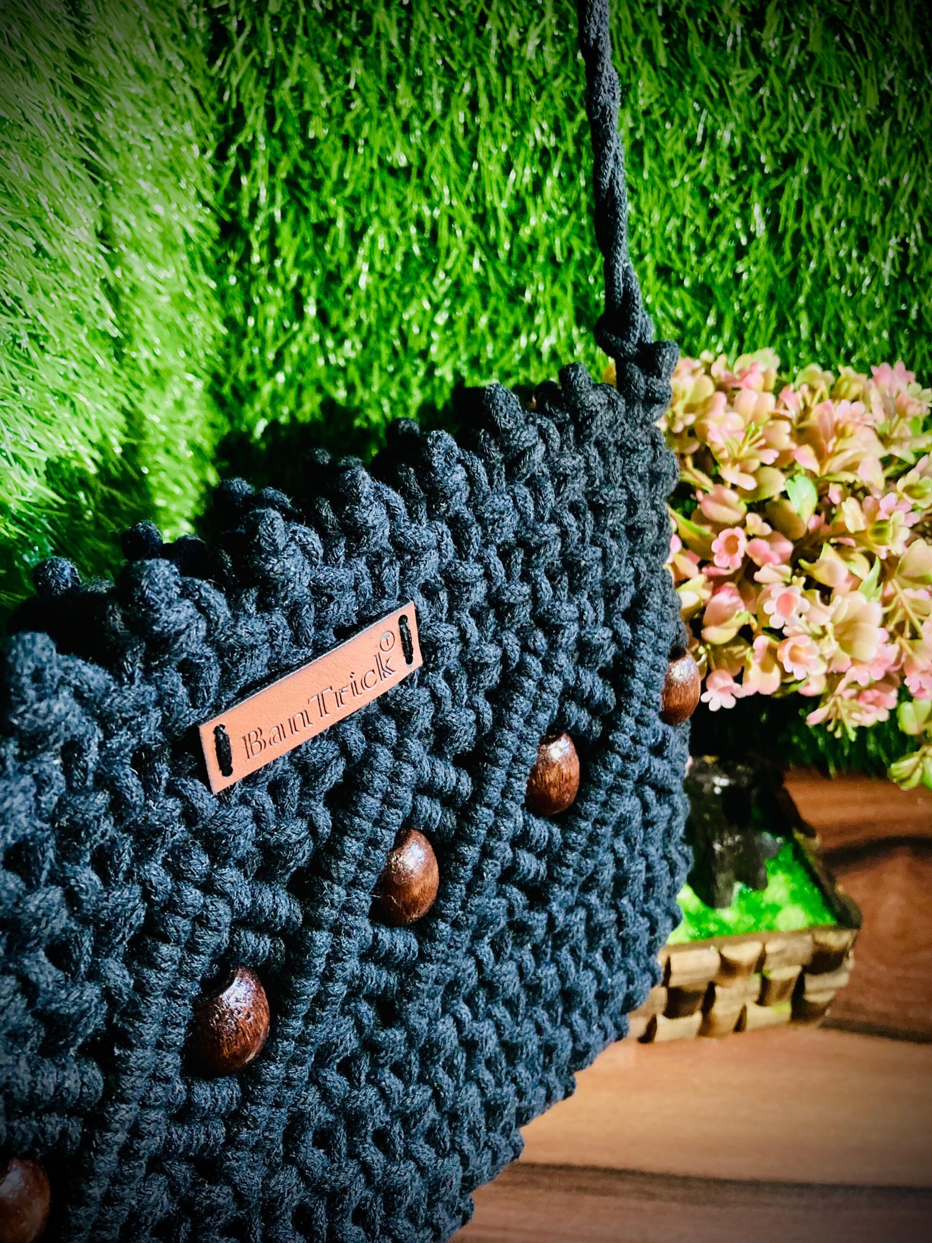 Bantrick off white handmade macrame bag would be an intricately woven piece, often using knotting techniques to create a unique and stylish design. The black color gives it a versatile and elegant look, suitable for various outfits and occasions. It might feature a combination of patterns and textures, with possible embellishments like beads or fringes to enhance its aesthetic appeal. The bag would likely have a soft, flexible structure due to the nature of the macrame technique, and could come with handles or a strap for easy carrying.