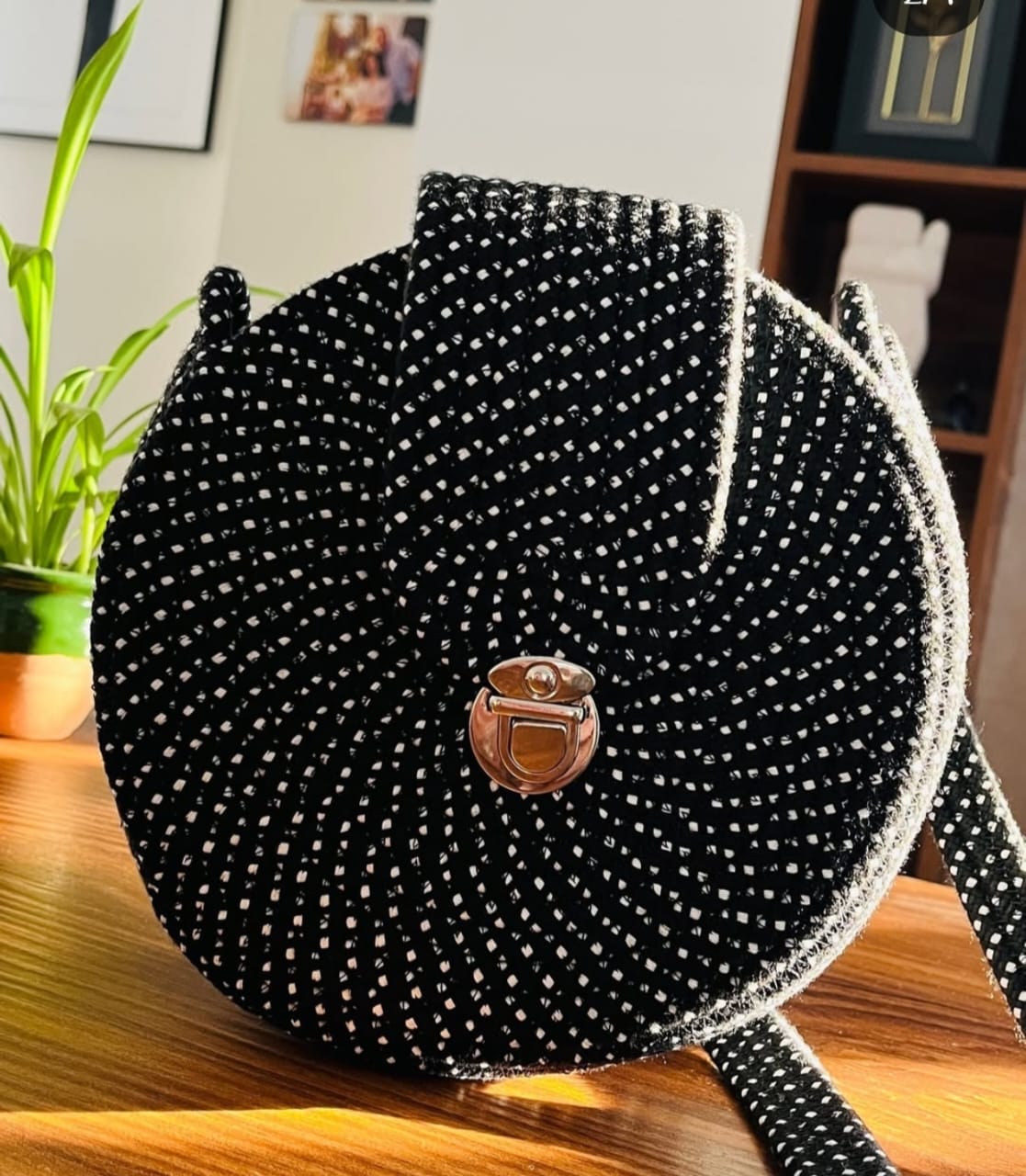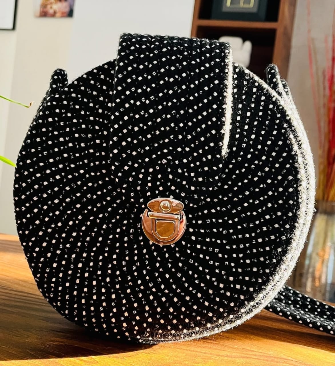 Eco- Friendly Women Jute Strap Bag Beige-Blk Strap