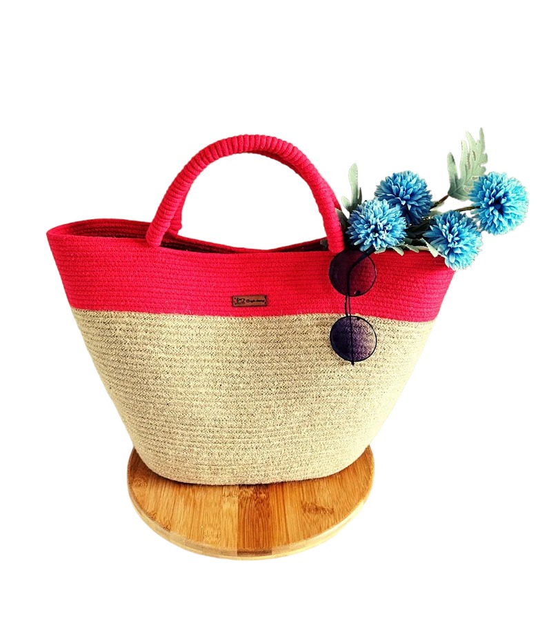 Substainable Style Women Jute Into Red And Beige